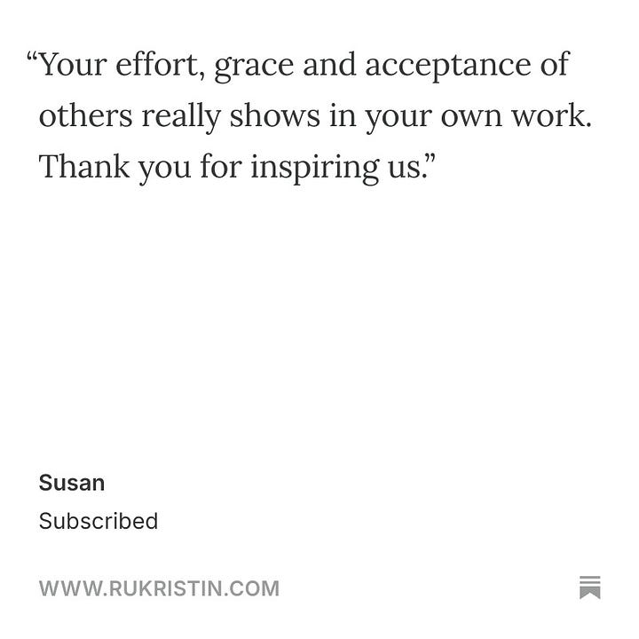 Everything I post is either in your inbox or on my site at rukristin.com. I run this whole thing through the Substack platform, so you can read it in your email or on the site—totally your choice.