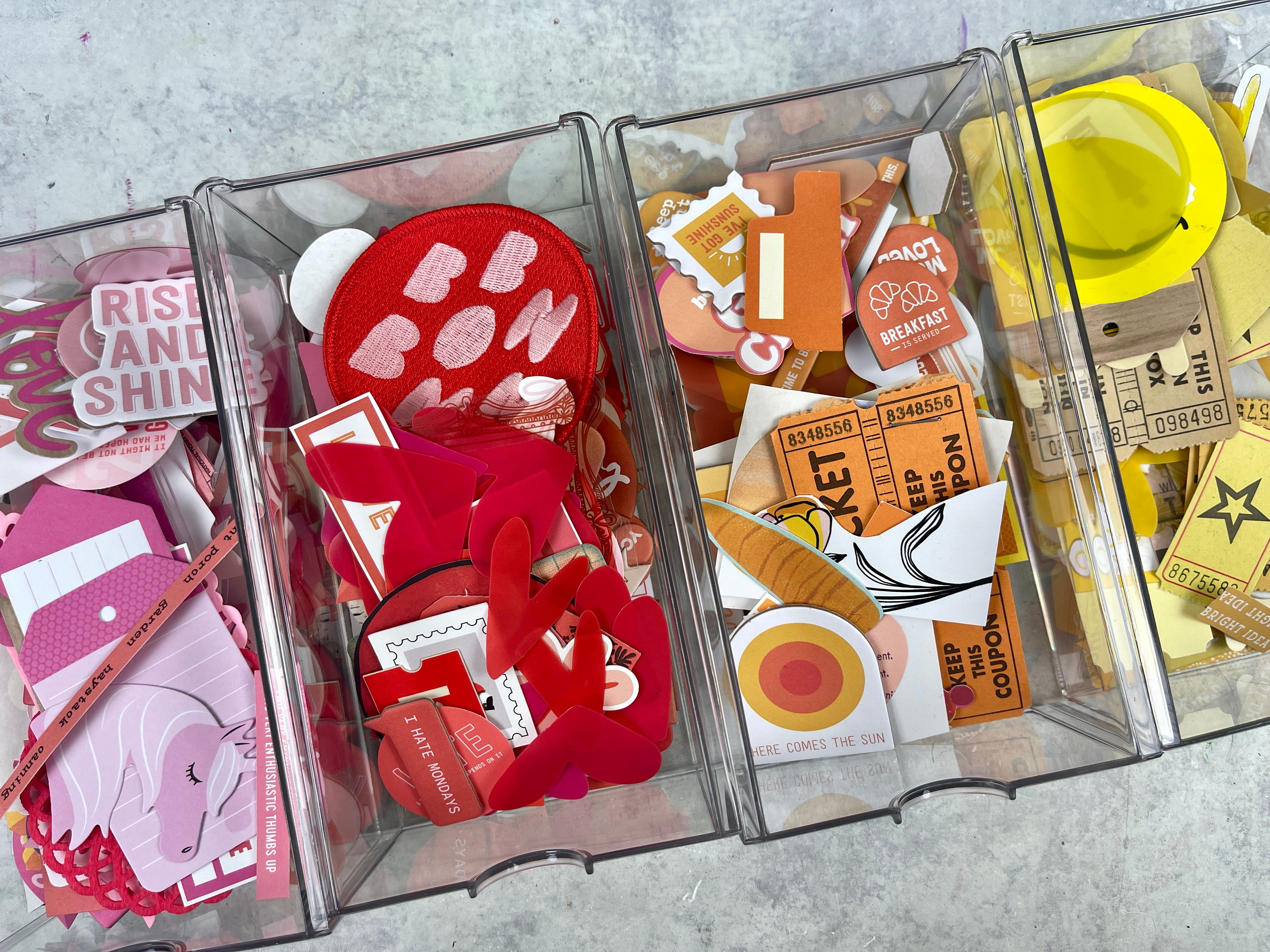 But if you want something new and fun, I really love these clear drawers for small embellishments sorted by color—they’re functional, easy to use, and honestly kind of delightful to look at on my desk.