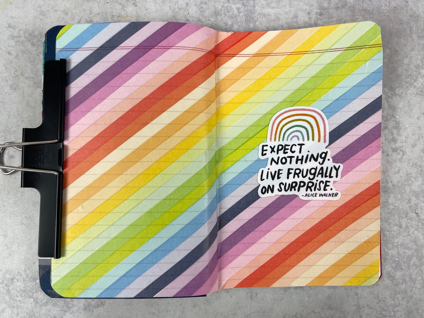 I’m a big-ideas person. I love thinking up elaborate projects. But when I’m not feeling well, my brain short-circuits with all the moving parts. Daily Pages helped me find a rhythm again. I could still make something even when all I had in me was stickers and washi tape.