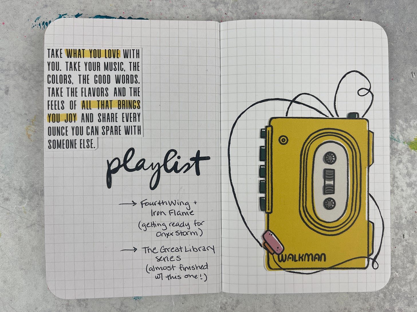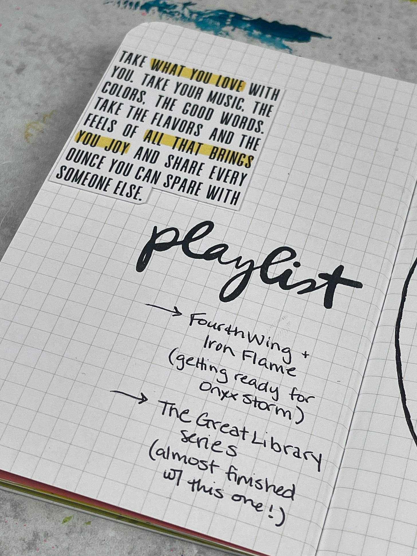 So, it’s been a week. So, it was all about fun and play today. I picked out something on my desk, cut it out, and added a few doodles and some words about what’s going on right now (a lot of Fourth Wing). And I absolutely love it.