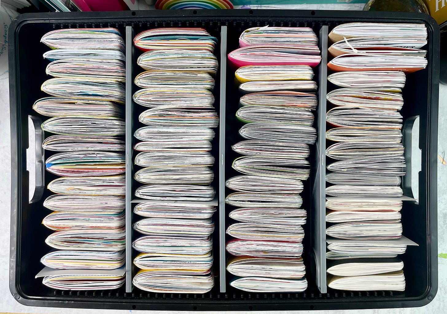 My shelves are lined with rows of notebooks, all the same size on the outside, but wildly different inside.
