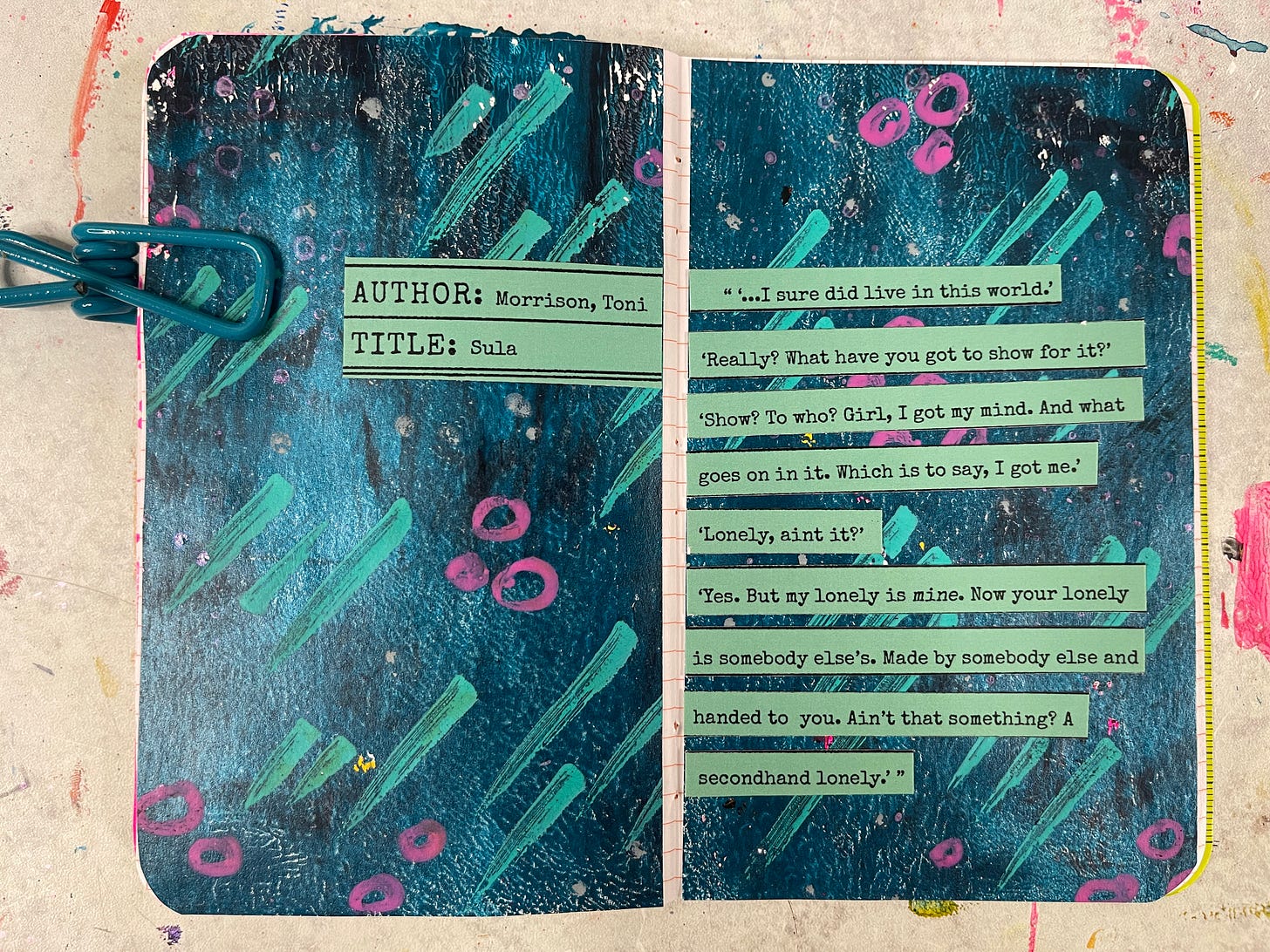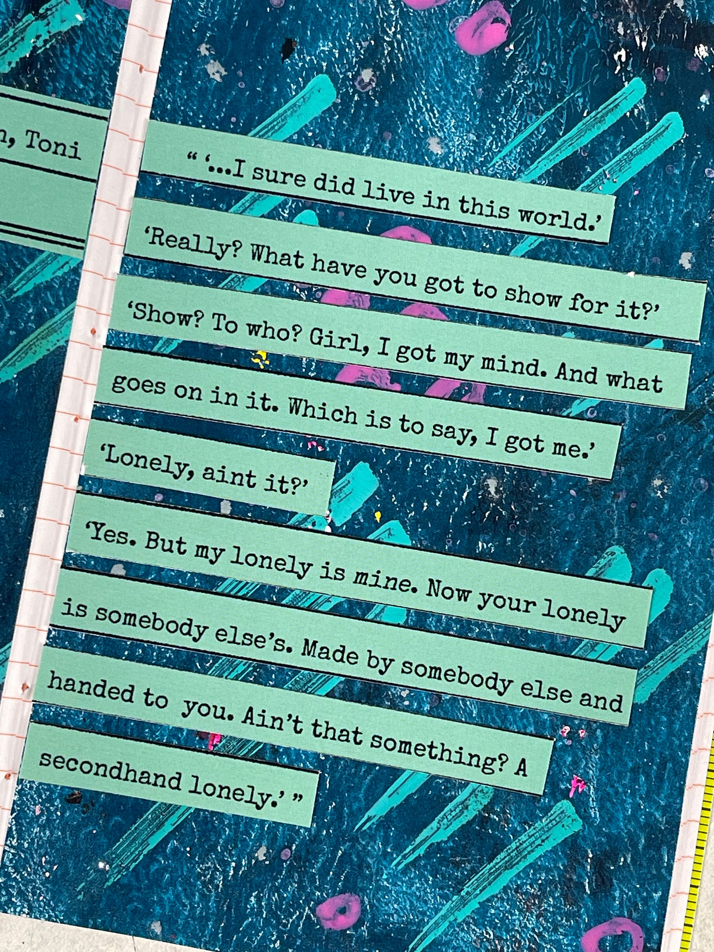 To finish up the page, I added a Toni Morrison quote from her novel Sula. I love using these book quotes to give my pages a little extra something. They look so much better here in the book than just sitting in a pile on my shelf :)