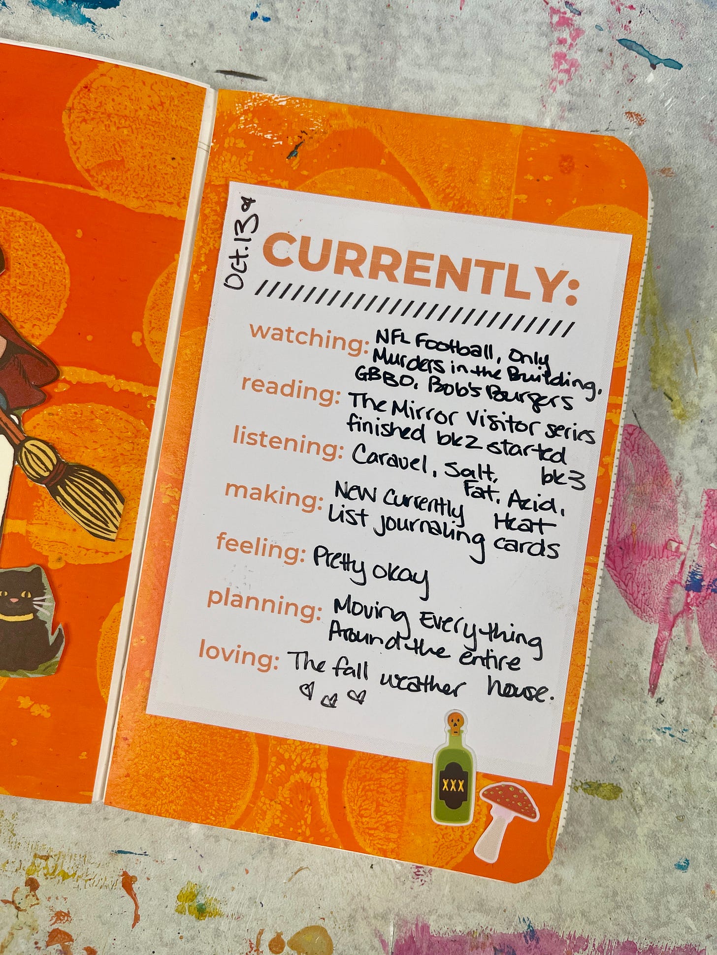 One of the things I’ve been thinking about the last two weeks is new Currently List colors that would match the colors I’m using this season—oranges, purples, greens, and blacks.