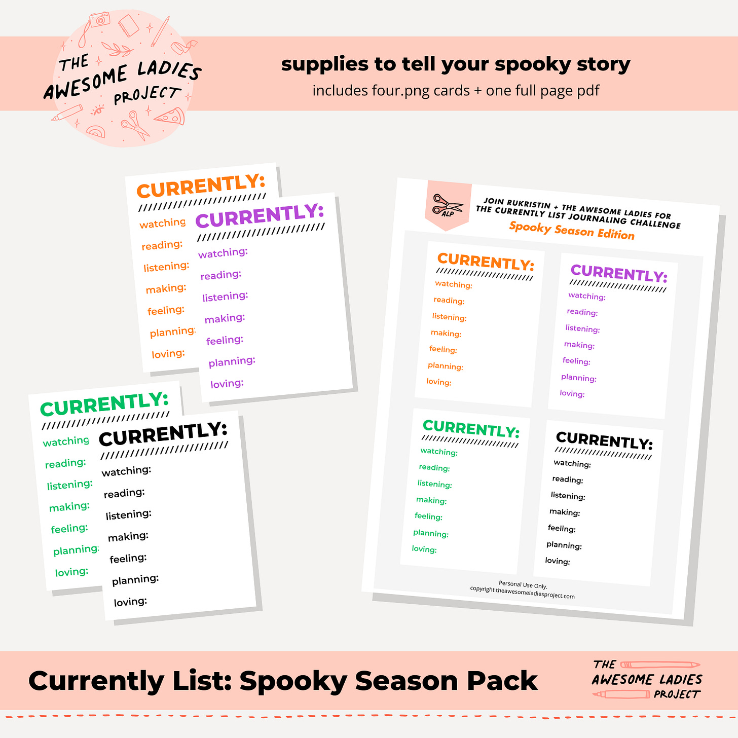 The Halloween Currently List Printable includes a full-page PDF and four journaling cards (with three brand-new colorways!), plus PNGs for digital journaling. Perfect for a cozy fall night with your favorite pen, stickers, and a bit of candy on the side.