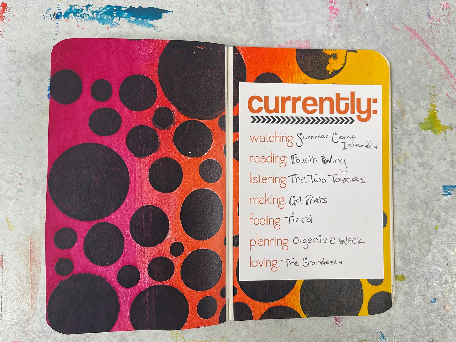 I love today’s page. I’m such a sucker for black with bright colors. I’m in my warm colors era. I need to pick up some more warm color paints—I’ve got a whole cart at Blick that I just need hit purchase on, which has a ton of great colors in it.