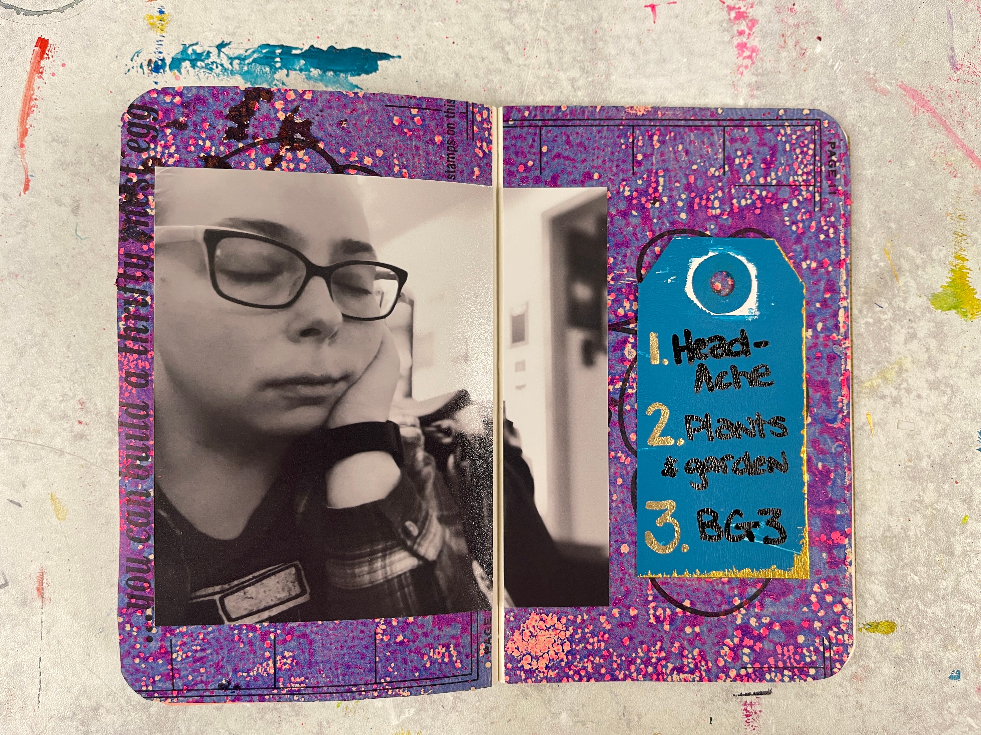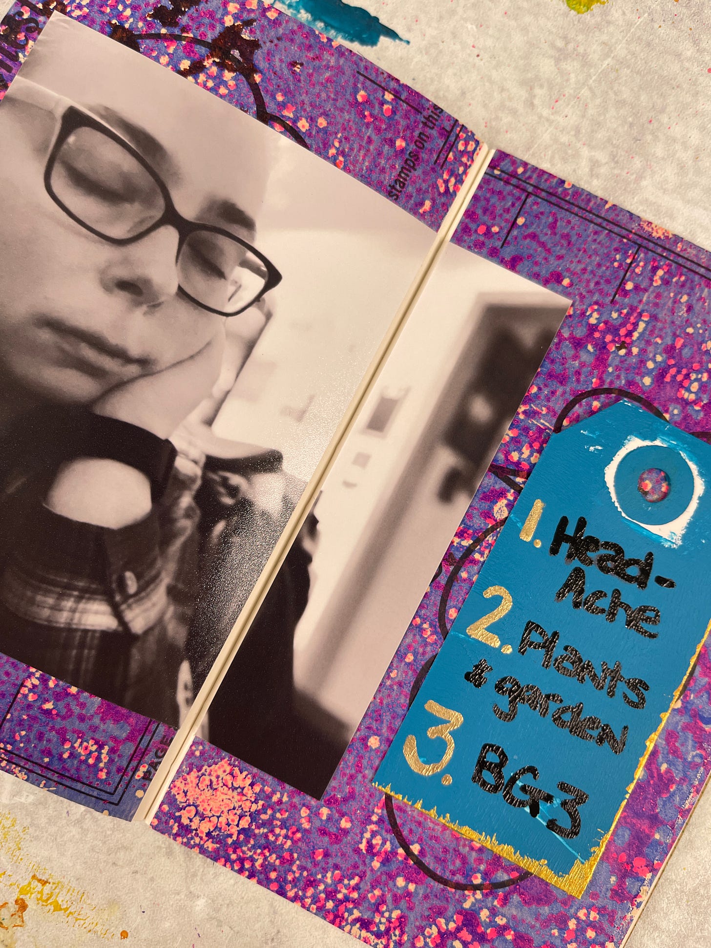 My first pen ran out half-way into the word headache, so I switched over to a black paint marker. It’s not my preferred journaling pen, but I couldn’t find another permanent marker, and I knew it would write on the painted tag. I’m happy with the way it came out, even if I didn’t have a ton of room to write.
