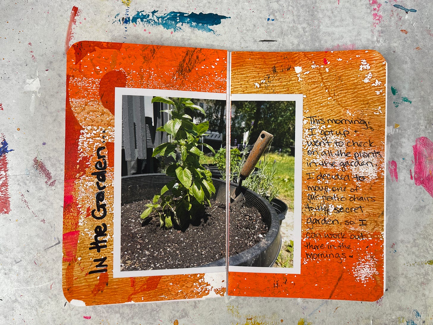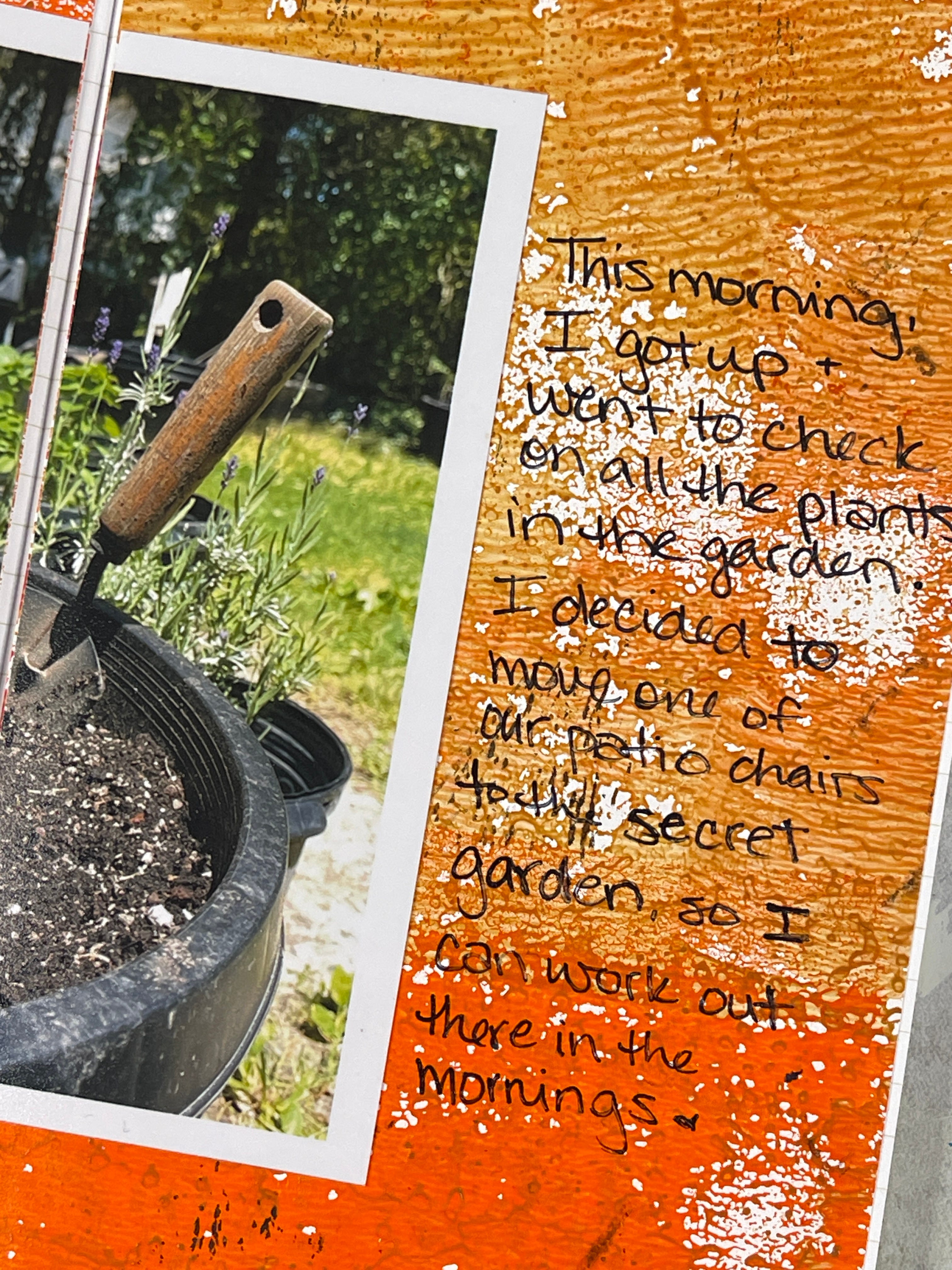 I woke up early this morning (huge fan of early mornings in the summer—not so much in the winter) and went out to the secret garden. It’s this little bit of space between the house and the garage. That window on the far end is the backside of our entryway, so you can see right into the secret garden when you walk into the house, but you can only access it via a sliding glass door in another room.