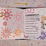 You can’t really see it at all in the picture of the Daily Page—but I spent a bunch of time dry embossing (pushed through an embossing stencil) the blue speech bubbles on the left side. They look super cool in person, but pretty flat in the photo. They also feel really cool.