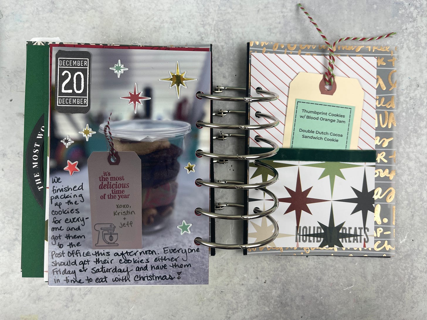 Today we wrapped up and mailed out all our holiday cookies. I created today’s page to show off the finished cookie packages, and to share the little tag I made to go along with each package.