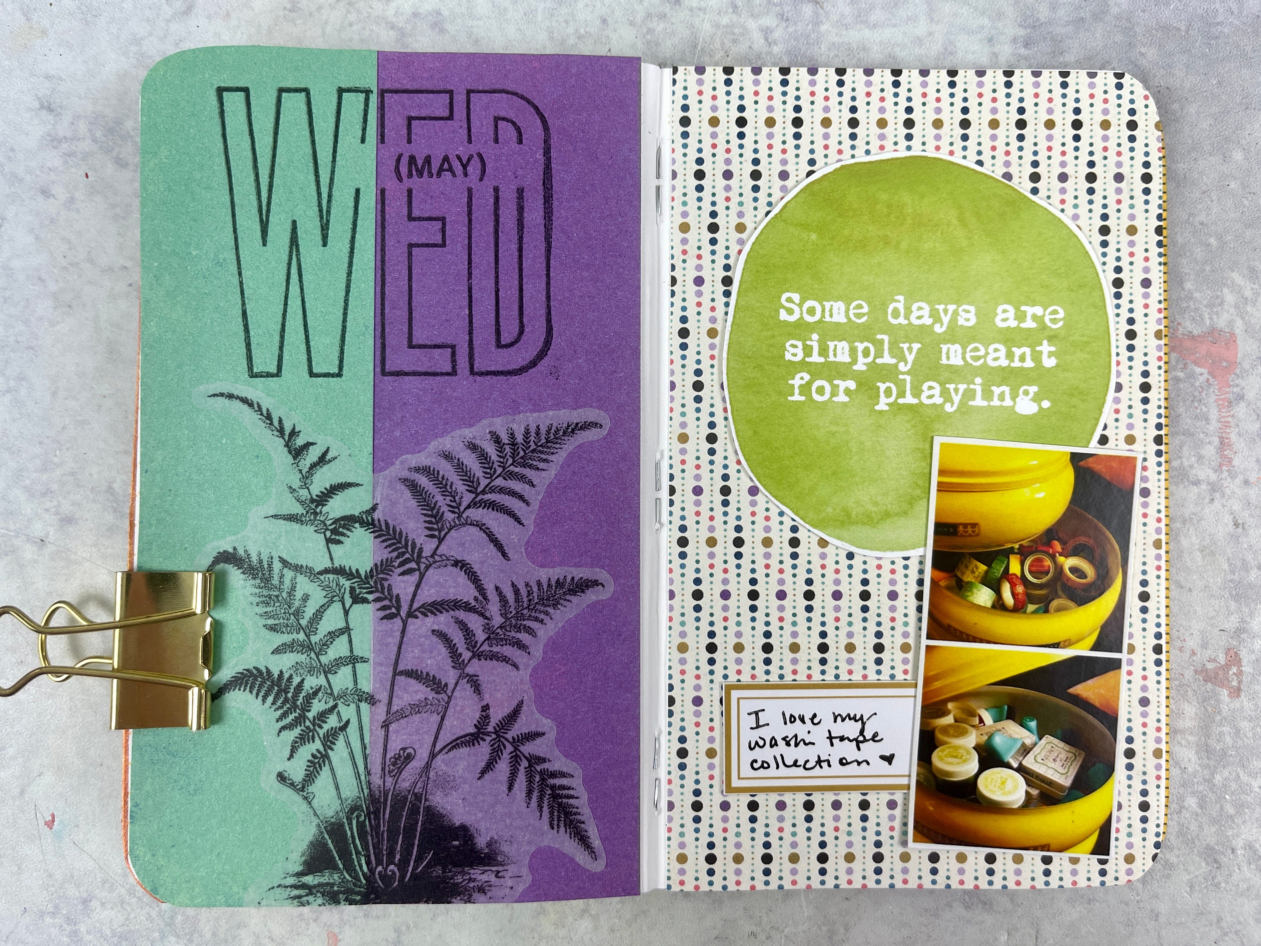I love alliteration. It makes me happy in my heart and it makes things easier to remember. It’s one of the reasons I made some of my Daily Pages prompts alliterative. We’ve got technique or tool Tuesday, Thursday3, and on Wednesdays we do washi or weather (or both).