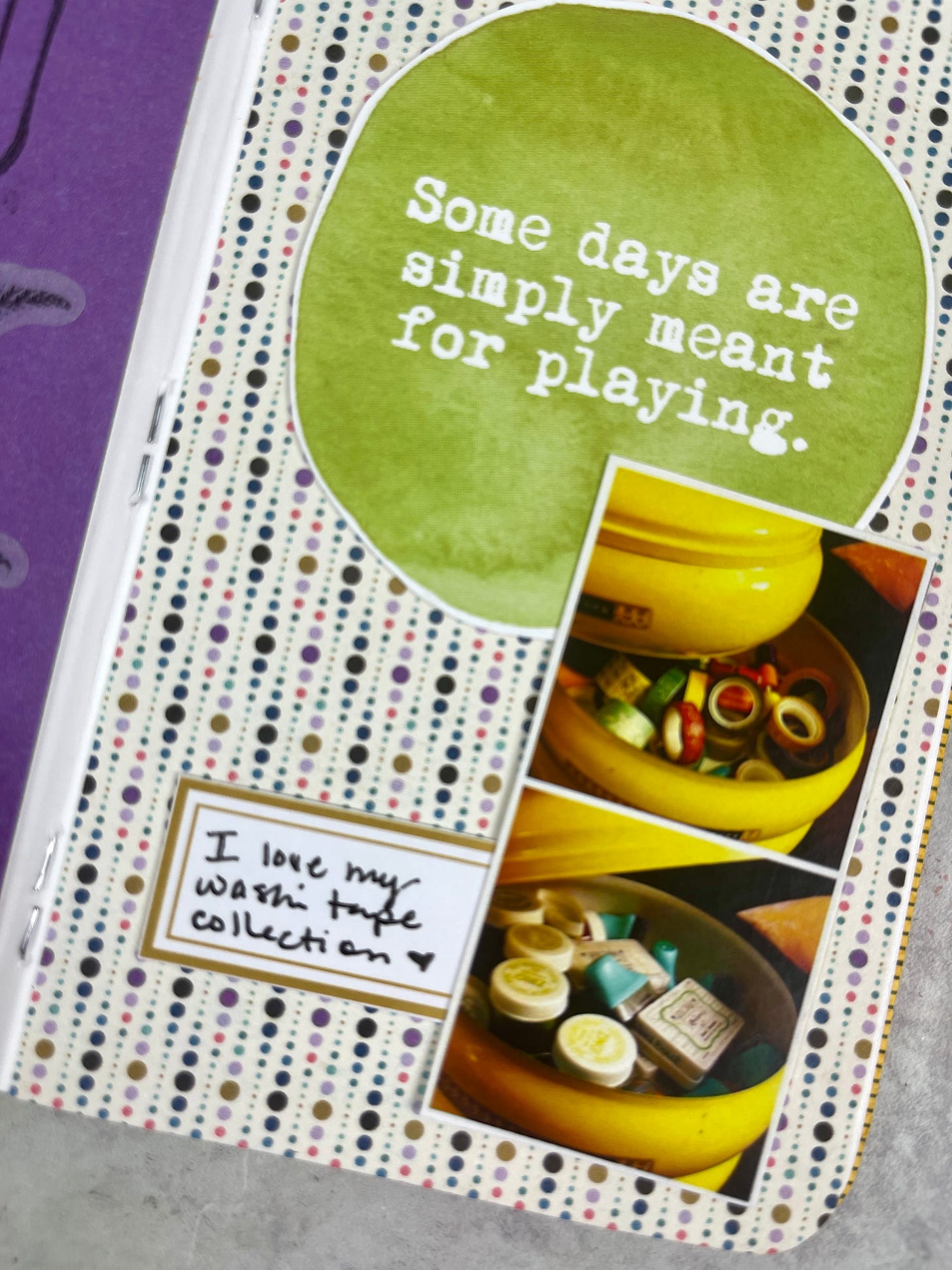 Photo collages are a great way to print out several little photos at the same time. These photos were from a 3x3” collage that I created and had printed with some other photos. I love that I can use these tiny little pictures in my Daily Pages to help tell more stories.